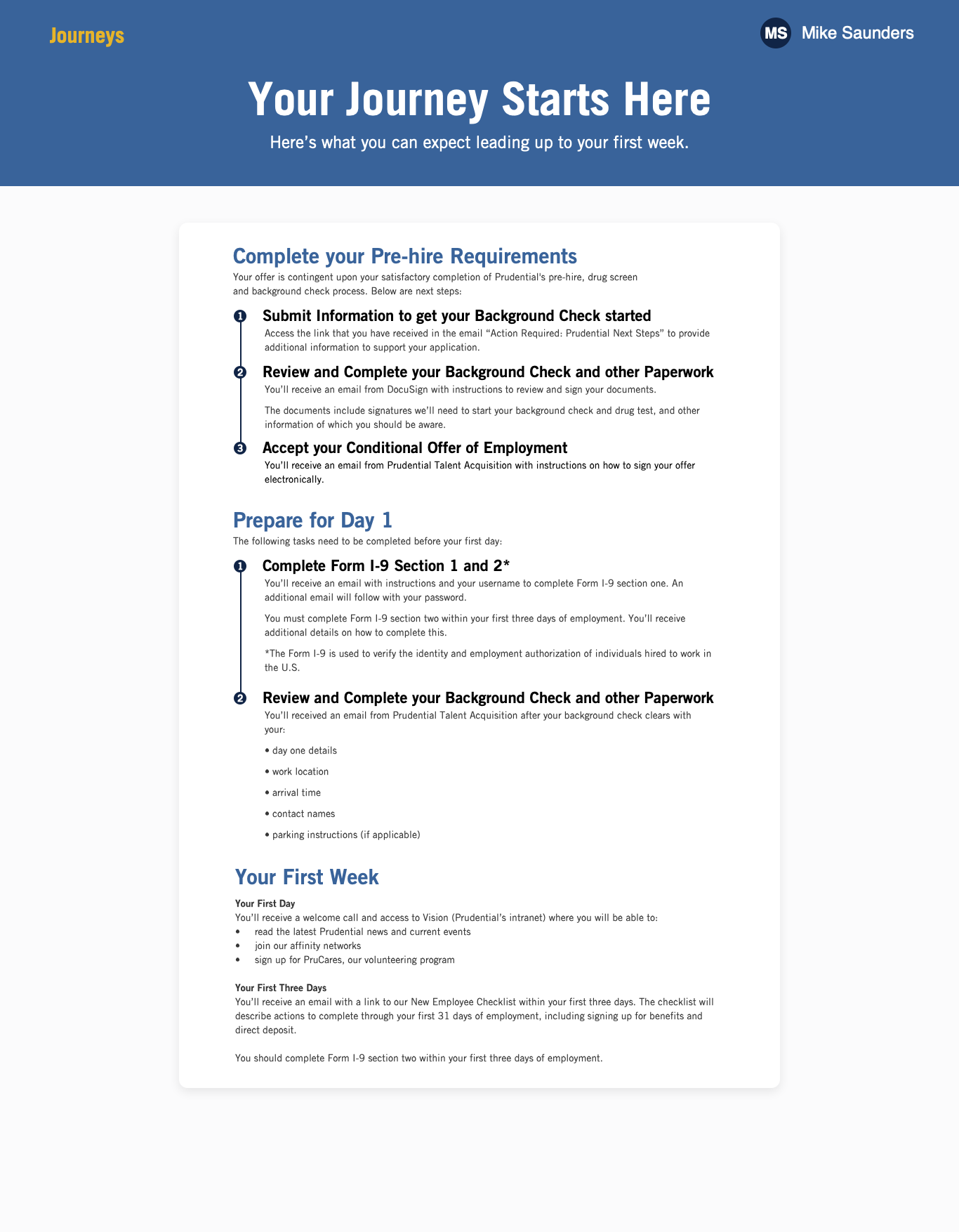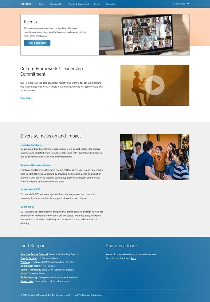 Journeys and the new onboarding process continue to welcome Prudential employees. It is supported by an agile team.