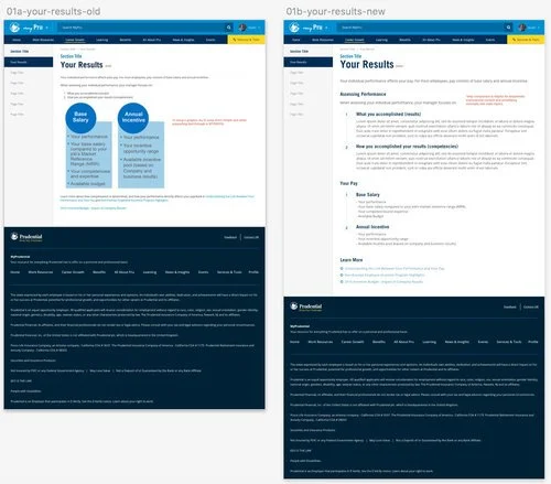 Employees characterized the previous version of MyPru as overwhelming and complicated. Navigation and page templates were confusing, and employees typically remembered how to access content through muscle memory.